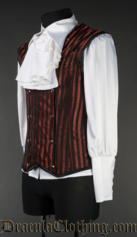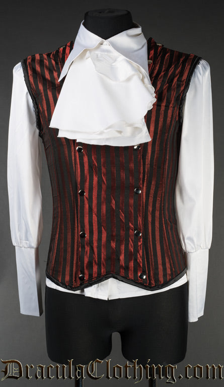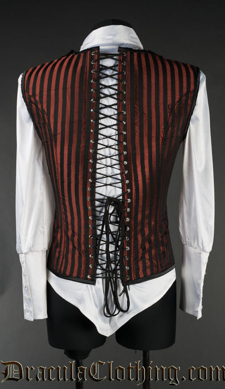 This Red and Black Striped V-Shaper is elegant and stylish, adding an instant flair to any ensemble. You can wear this product the way you would wear any regular vest, while still getting to enjoy the structure and shaping effect of a corset at the same time!