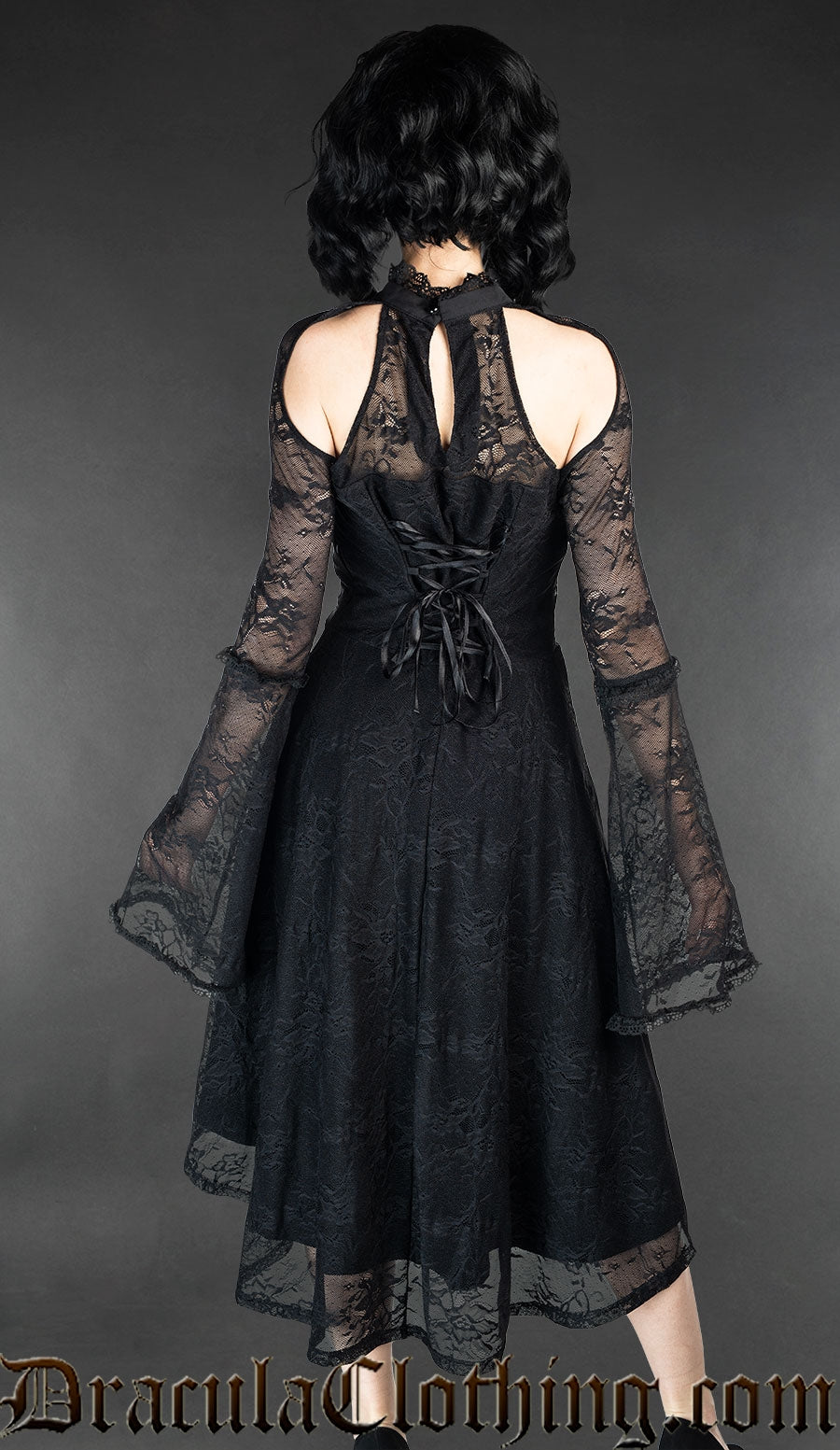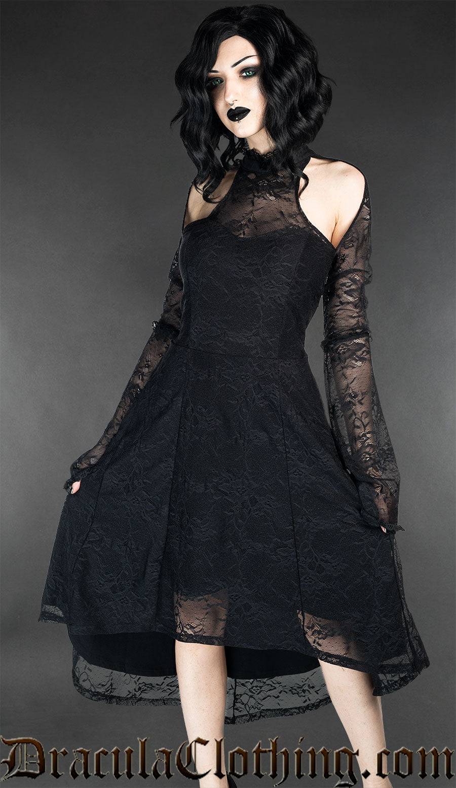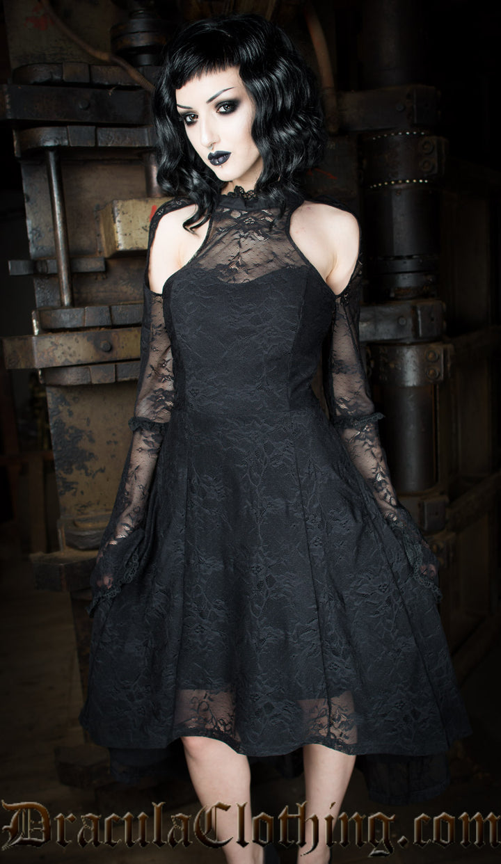 A true goth dress. It has two layers with a comfortable soft main layer and a top lace layer. Perfect for anyone that loves gothic clothing or goth couture