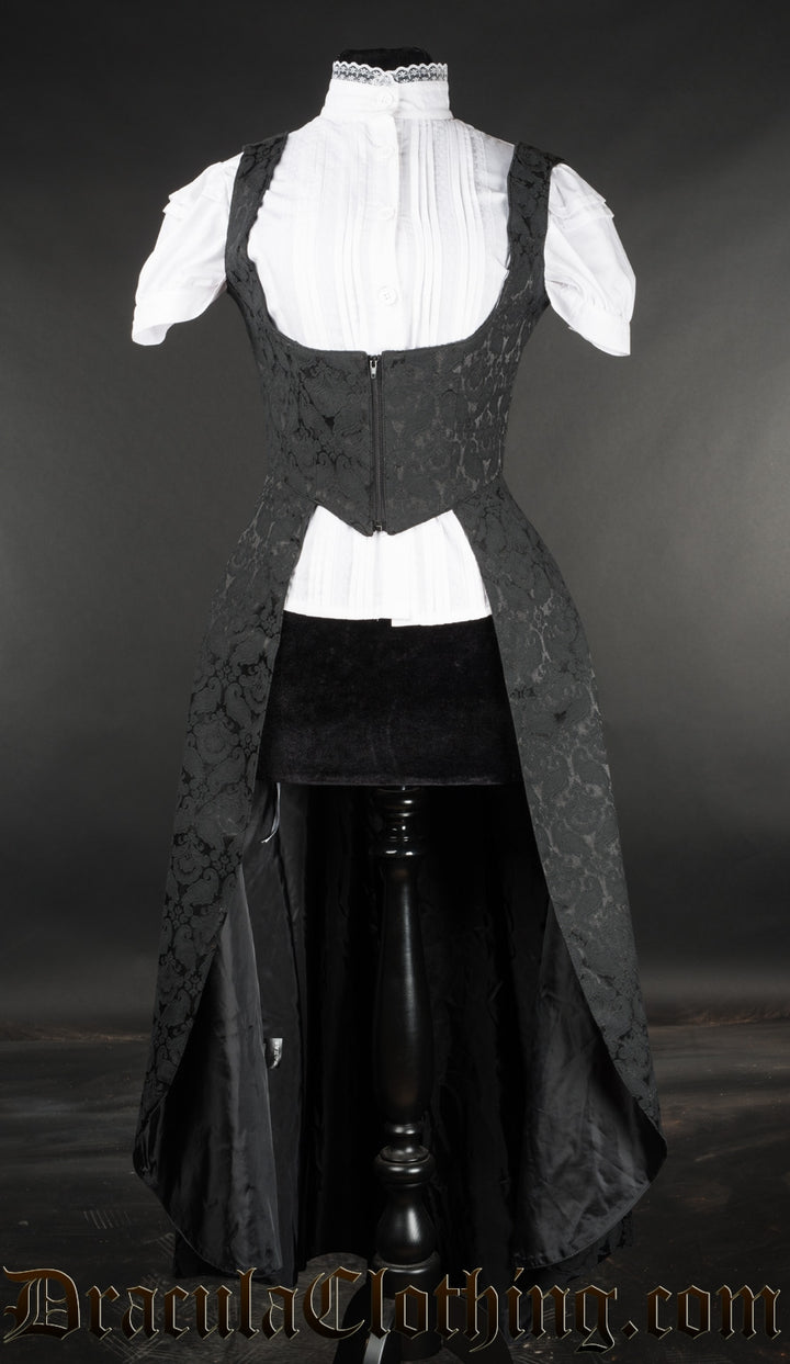 • Elegant black brocade under-bust dress coat