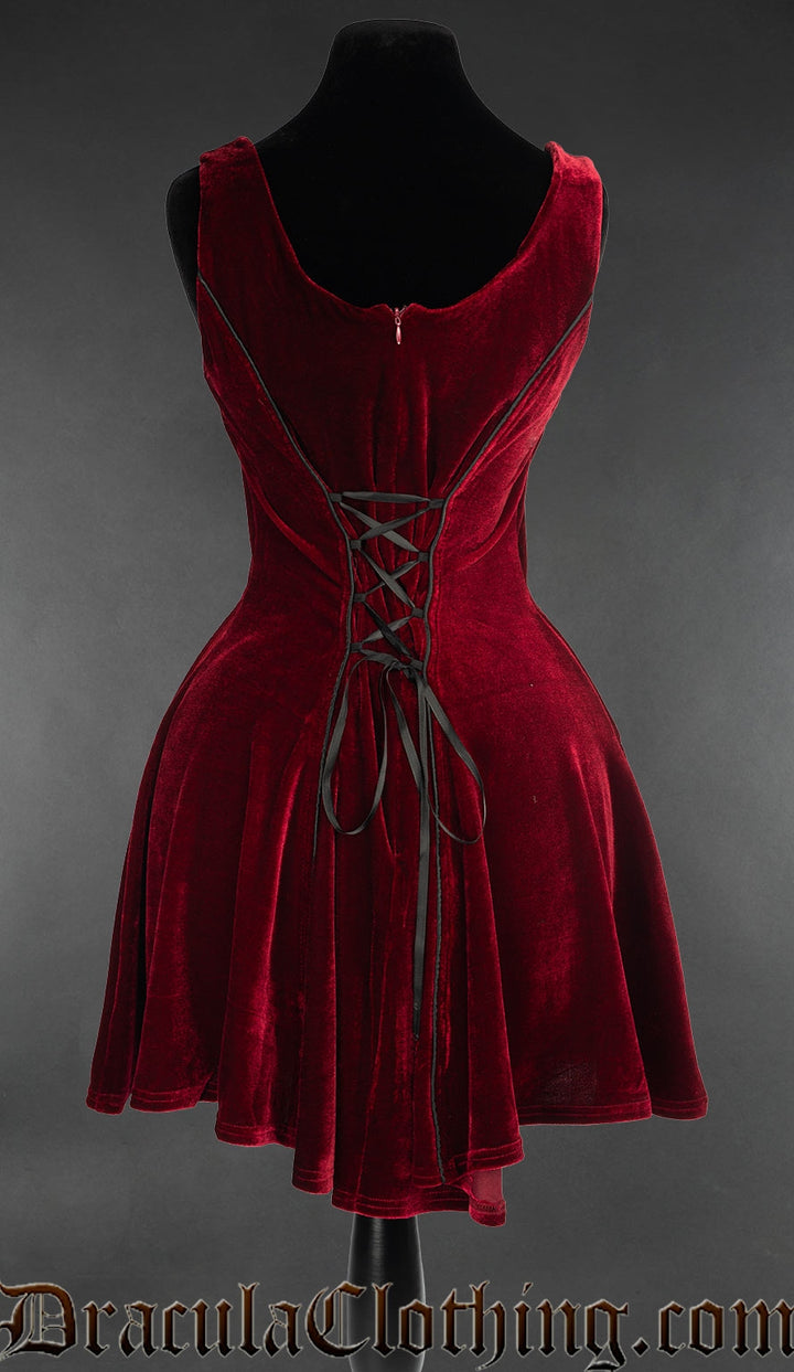 - Short, sleeveless dress made from thick, high quality velvet in a crimson red colour