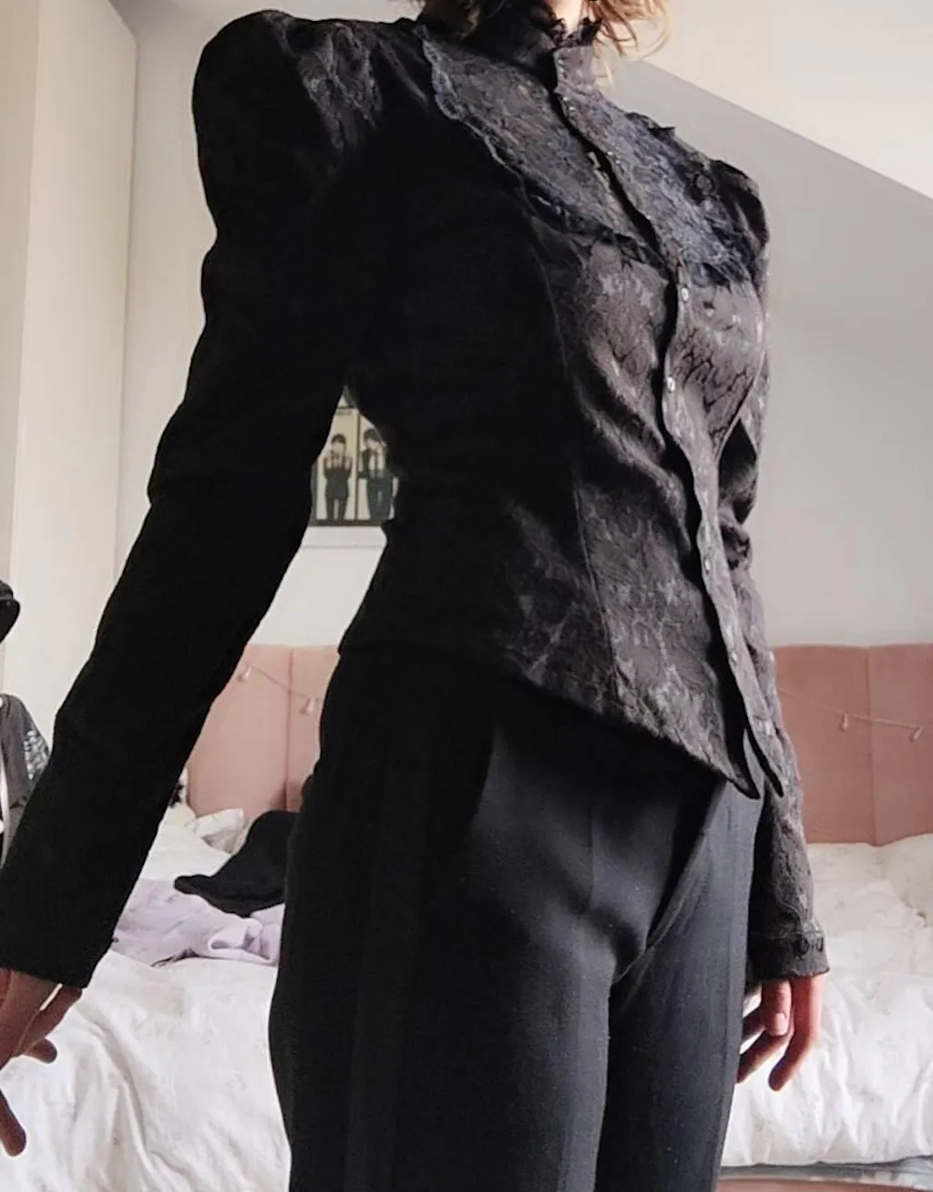 The shirt is very comfortable, I really appreciate the ribbons on the back, they help a lot with adjusting the size around the waist <3