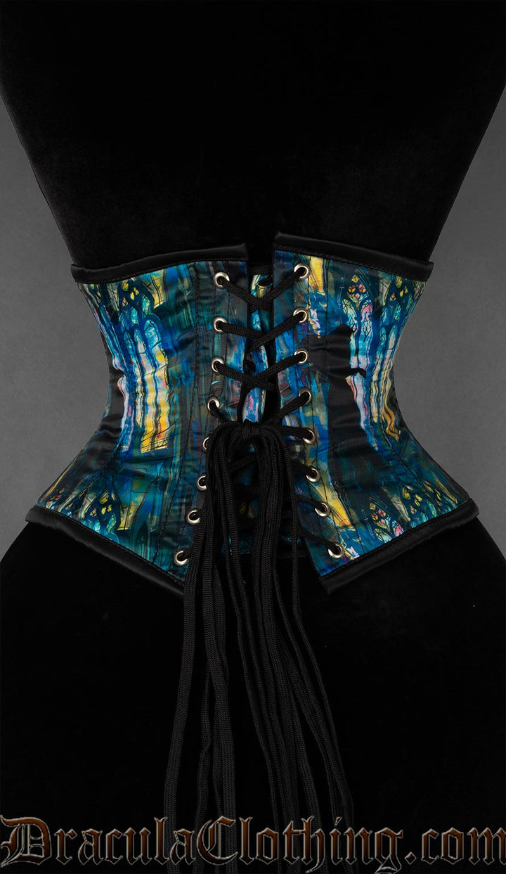 It is shorter than our regular corsets at just 20 cm in the front and back. A shorter corset is easier to lace up to create a beautiful hourglass shape. It looks great over our dresses or on its own.