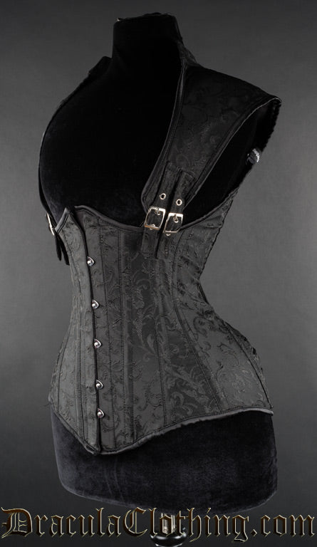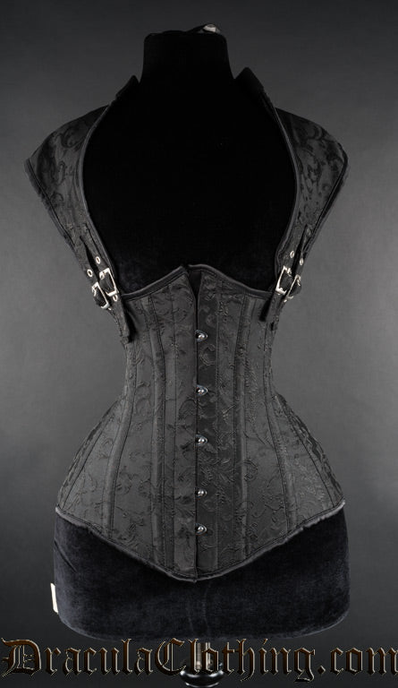 This corset doesn't have a modesty panel. Back length: 60cm/23.5 inch Front length: 36