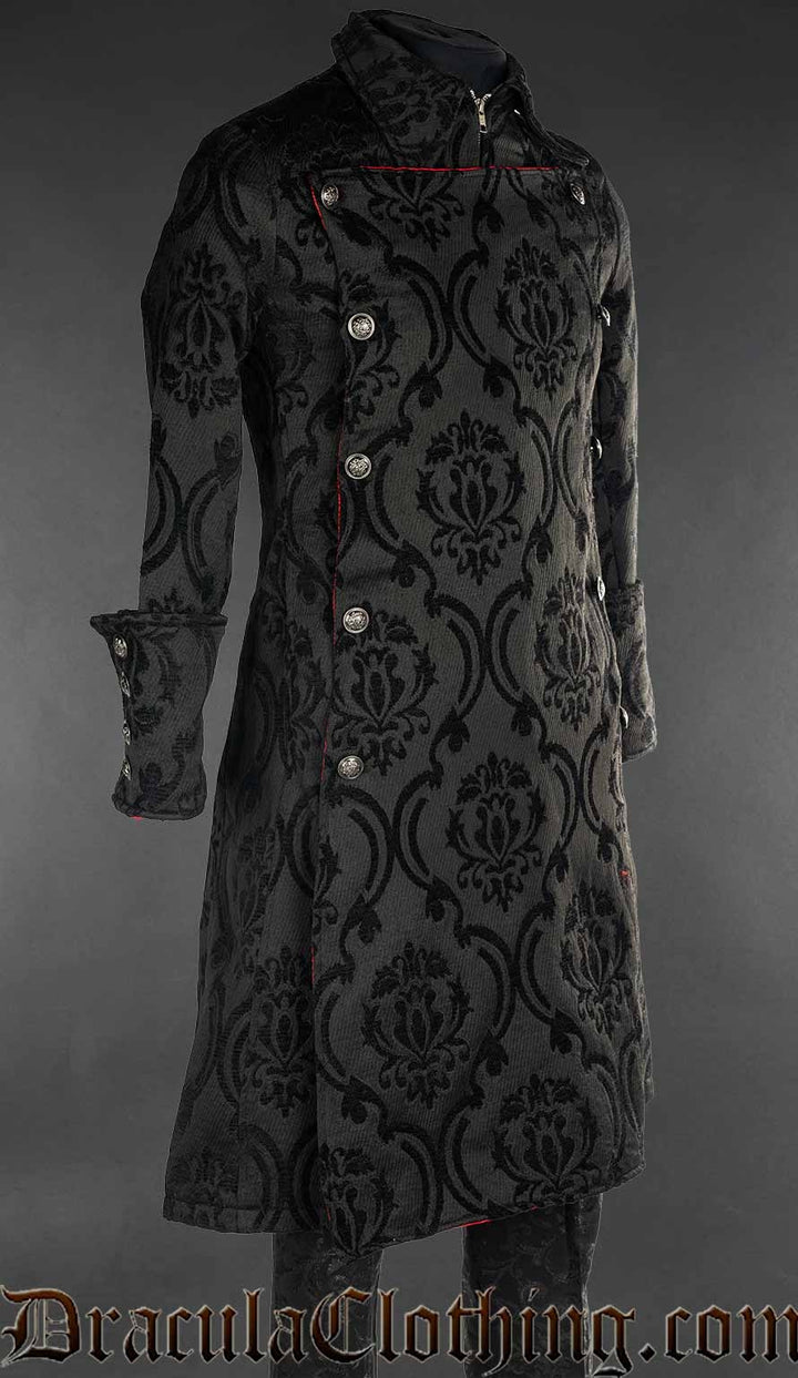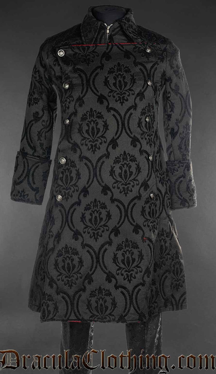 • Long Japanese officer coat made with our custom thick jacquard fabric in black