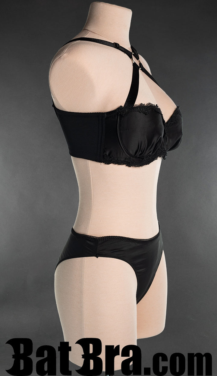 - Lightly padded, underwired bra made with smooth, high quality black satin fabric