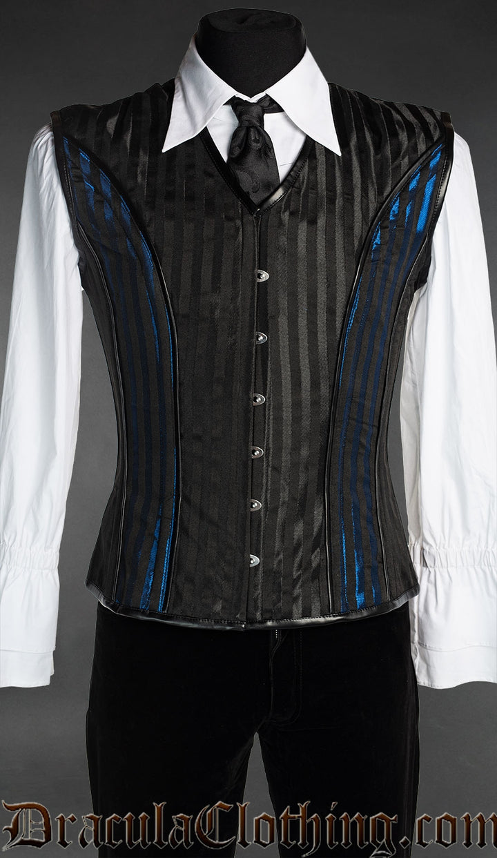 This V-Shaper is made with high quality black and blue striped fabric, and will instantly add a refined elegance to your formal ensemble. Wear this product just as you would wear a regular vest or waistcoat, while also getting to enjoy the structure and shaping effect of a corset at the same time!