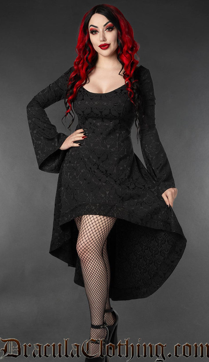 - Gorgeous gothic dress with bell sleeves and high-low hemline