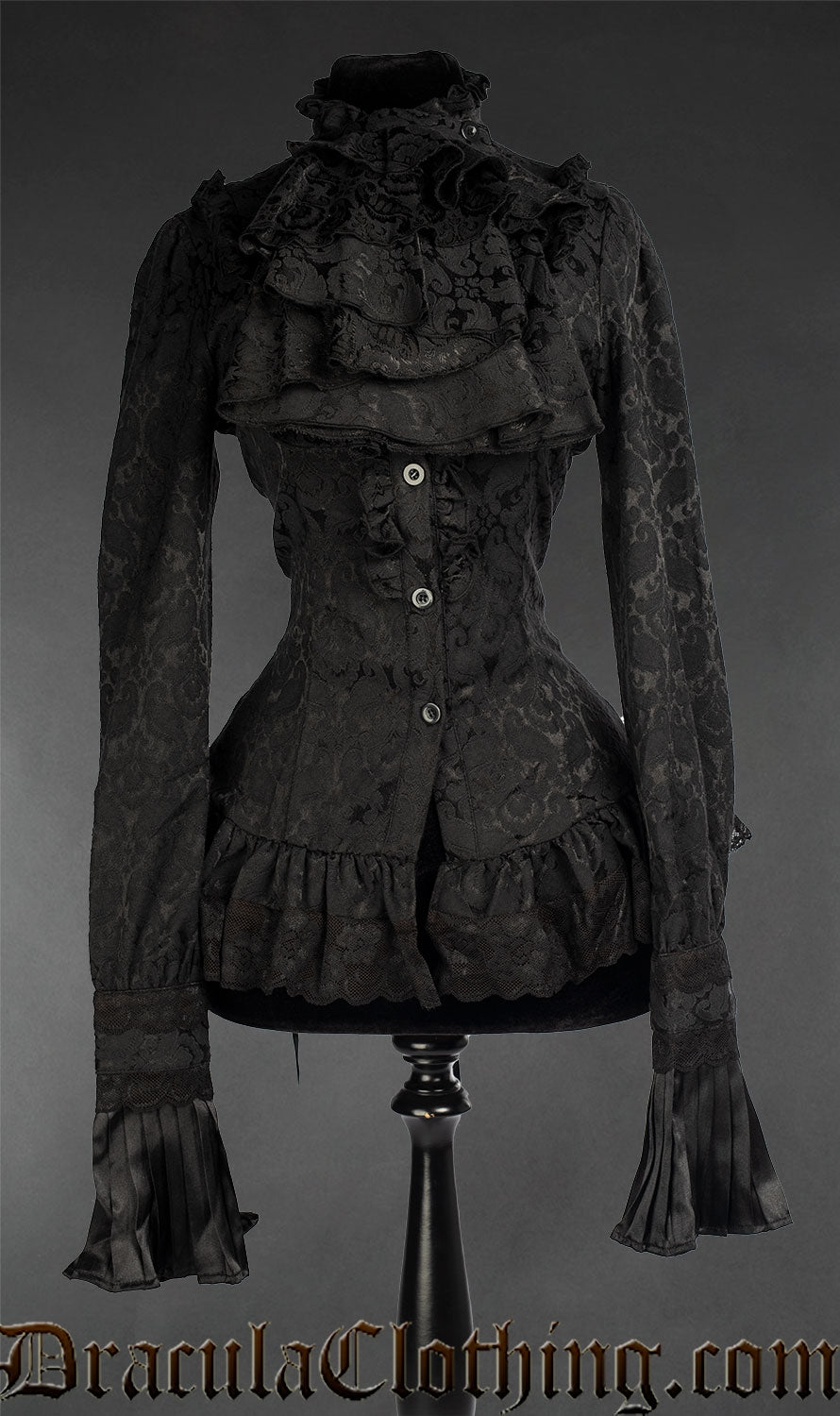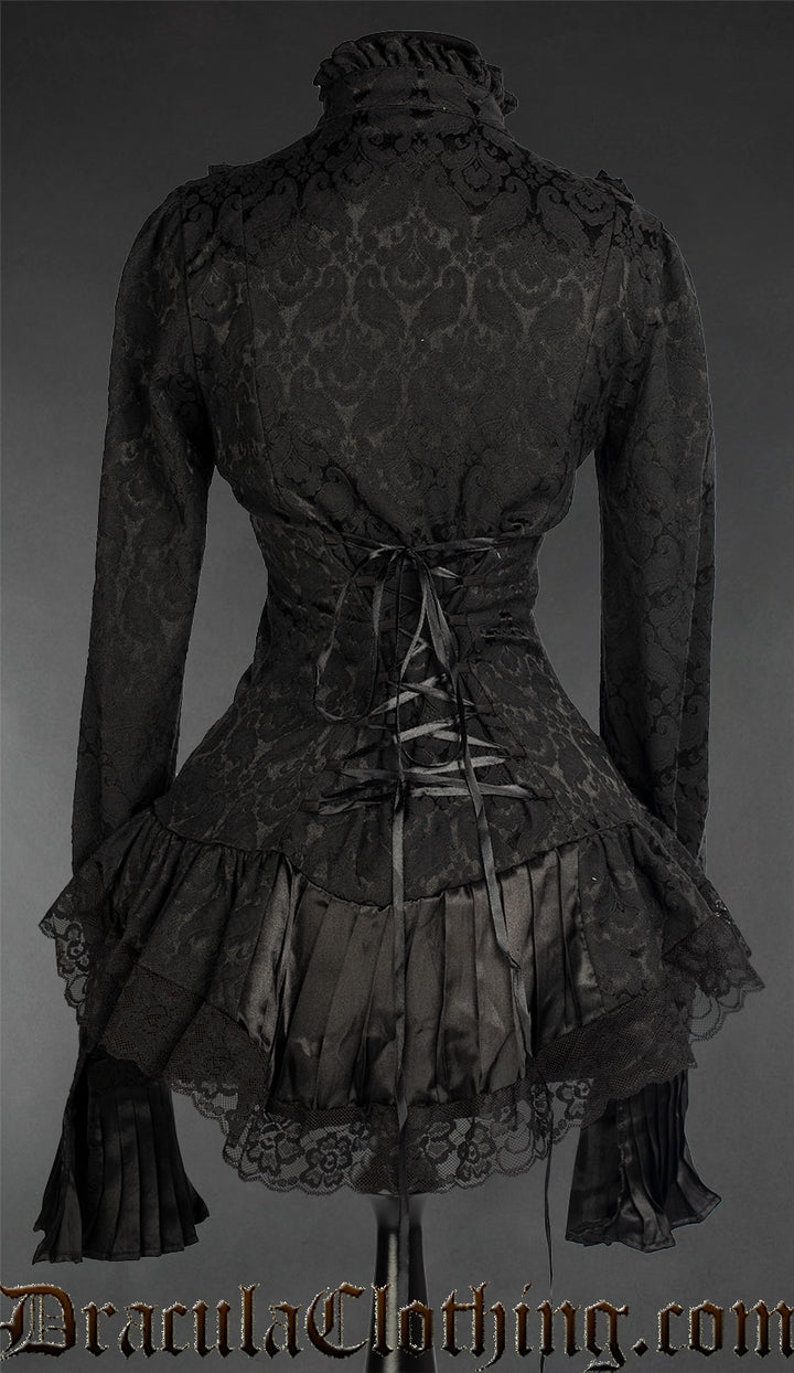 - Pleated, flared satin sleeves and a pleated satin hem accent in the back