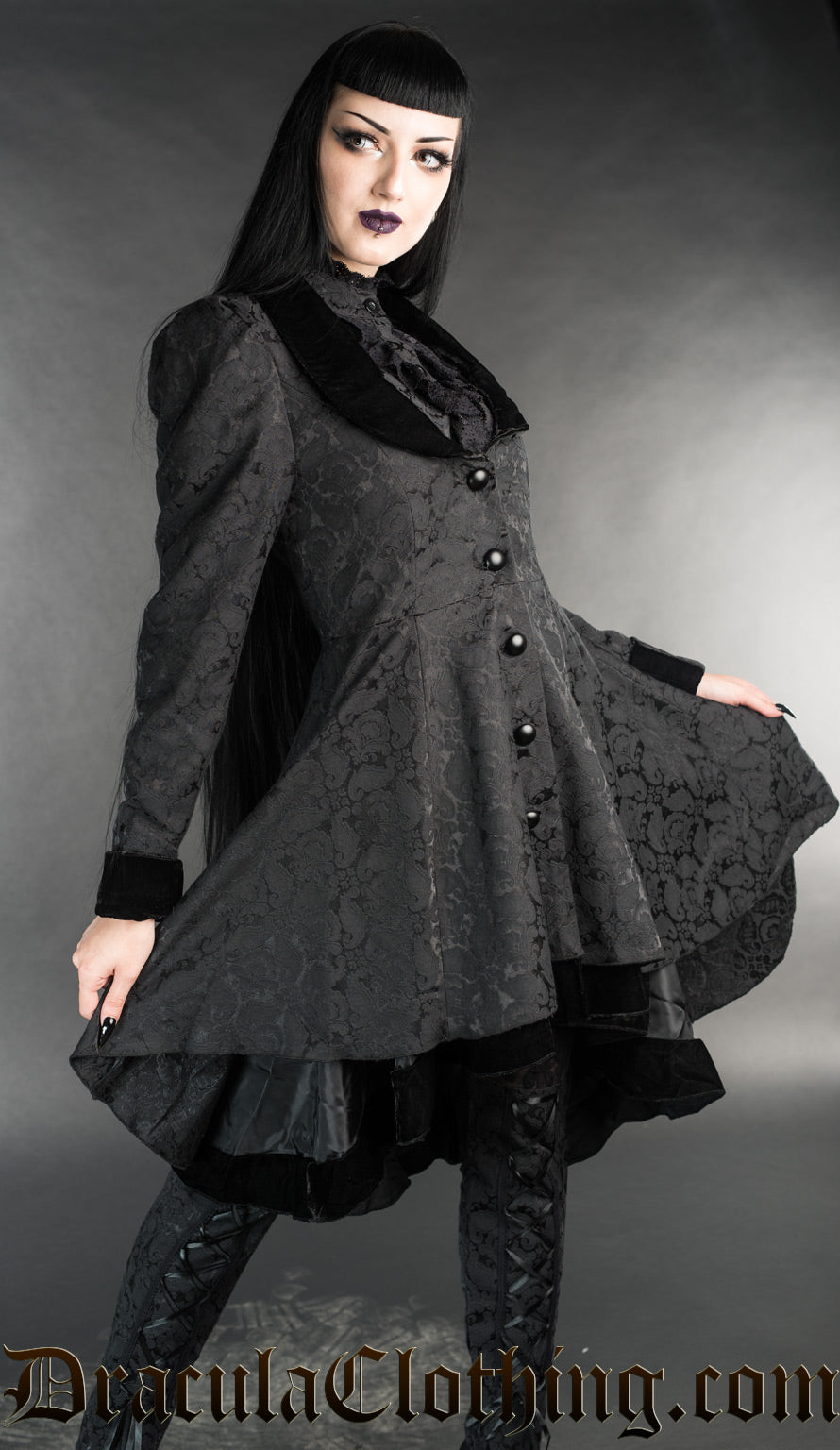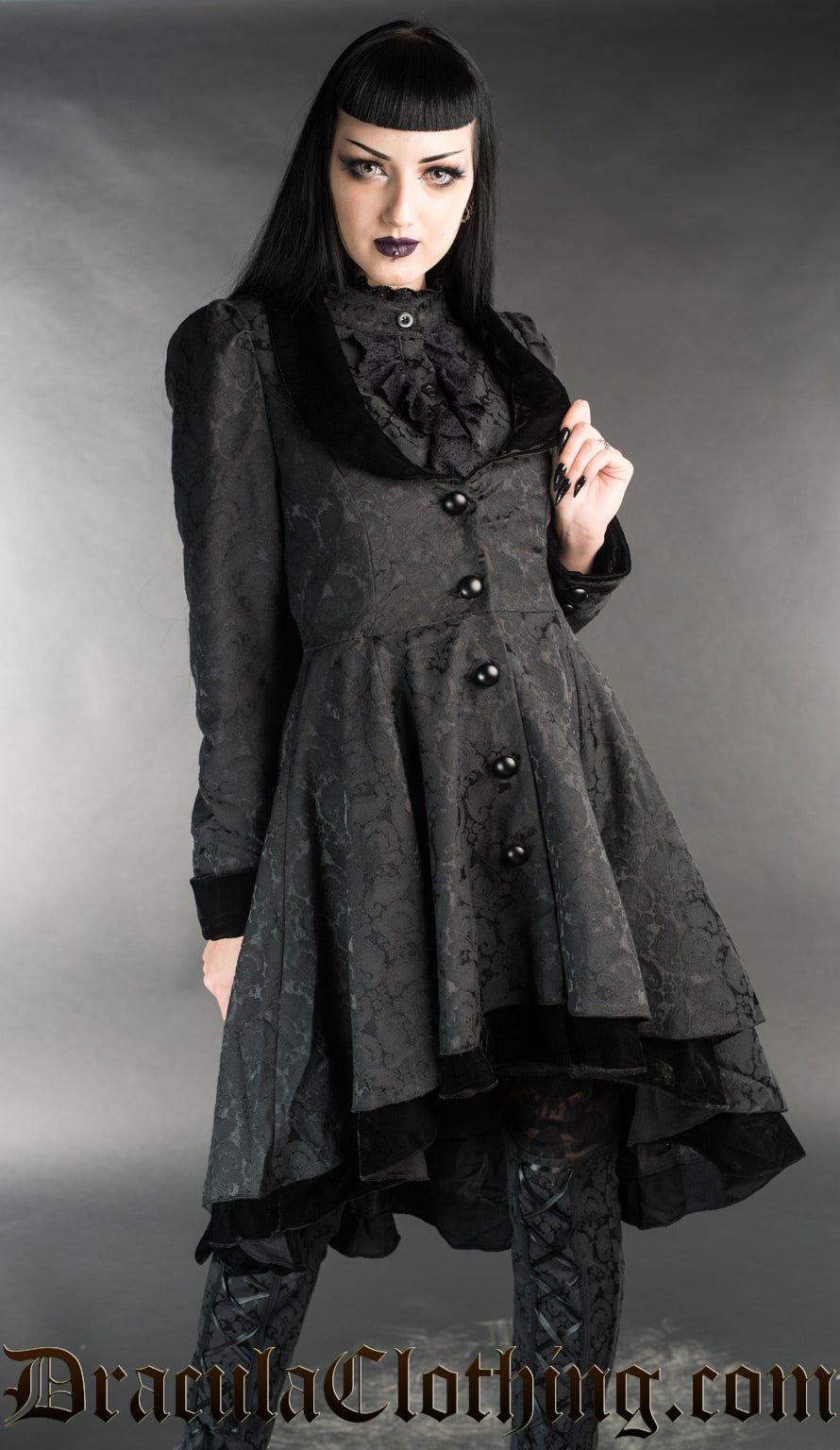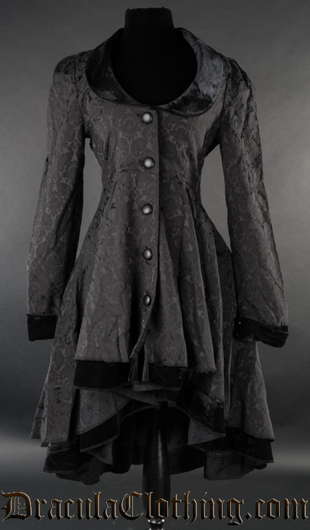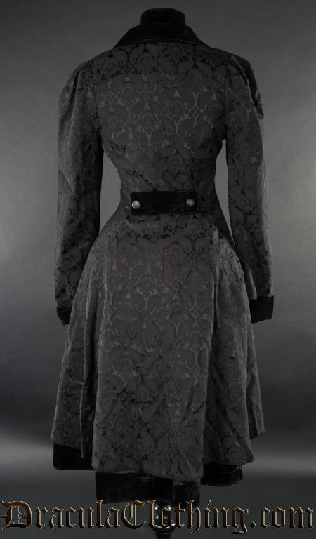 • Victorian inspired coat made with high quality black cotton brocade fabric