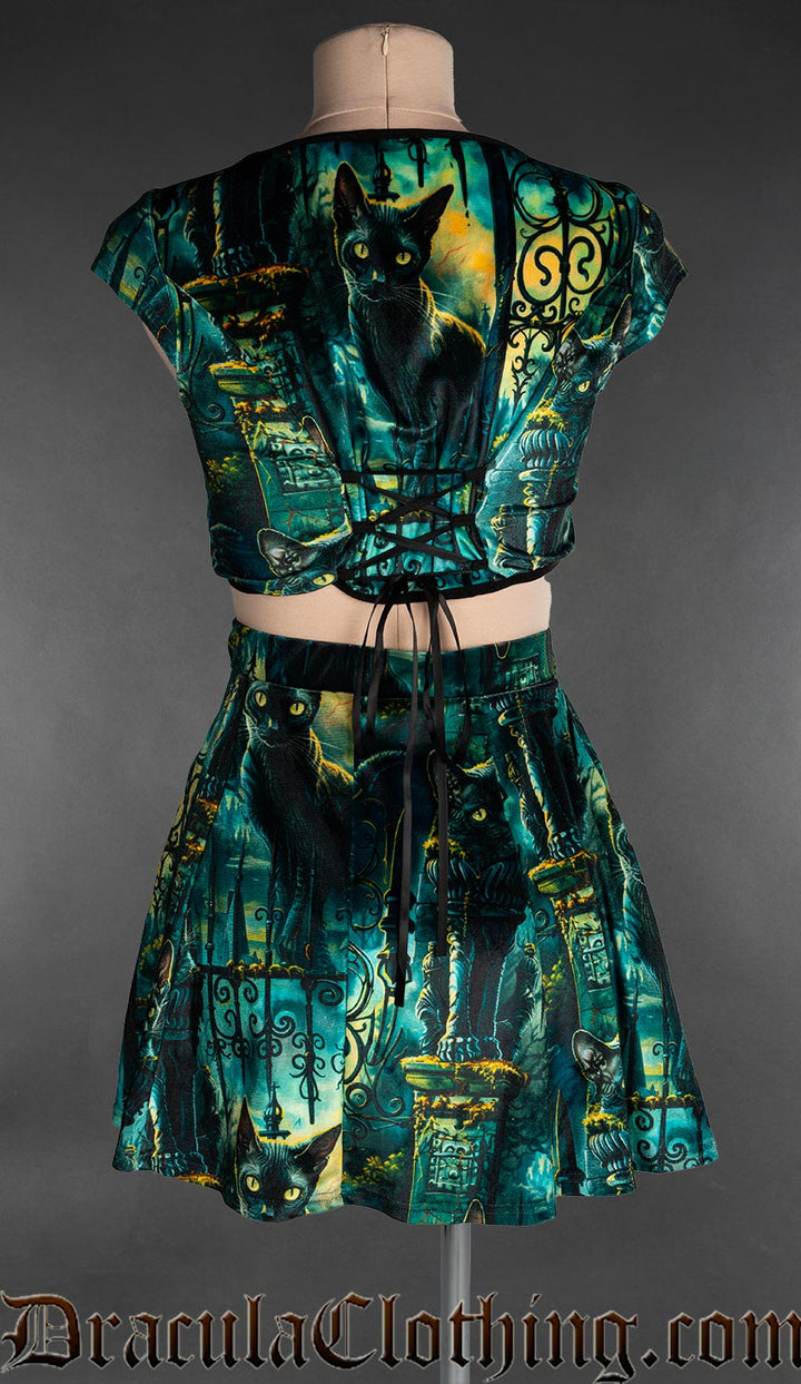 Graveyard Cats Velvet Crop Top