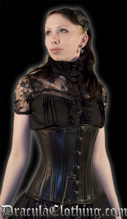 The Leather Longlinge Underbust Corset covers your hips, as opposed to regular corsets, which stop higher up. It is made of real leather.