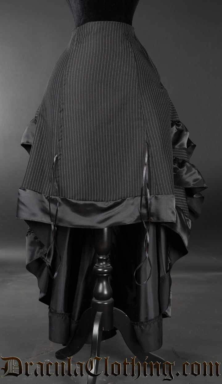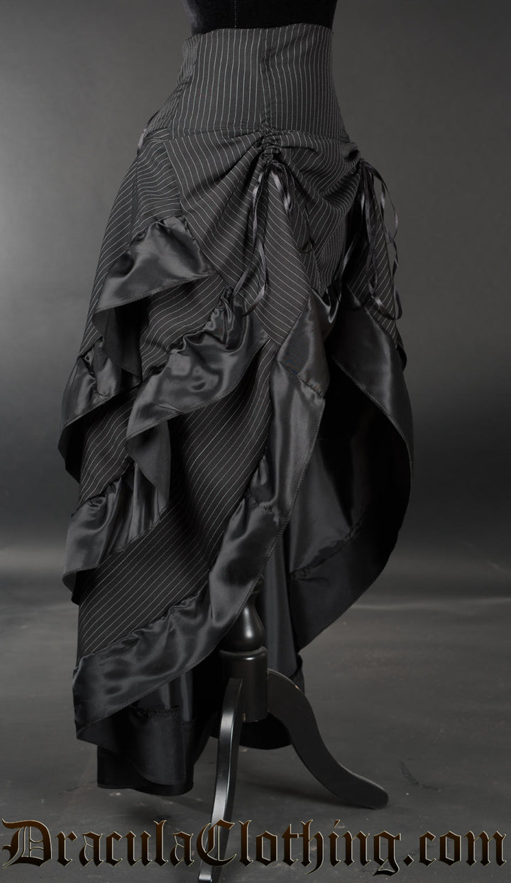 Pinstripe skirt that can be lifted up with two strings to create a nice bustle effect. Great for any elegant outfit or historical outfit.