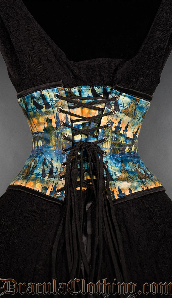 It is shorter than our regular corsets at just 20 cm in the front and back. A shorter corset is easier to lace up to create a beautiful hourglass shape. It looks great over our dresses or on its own.