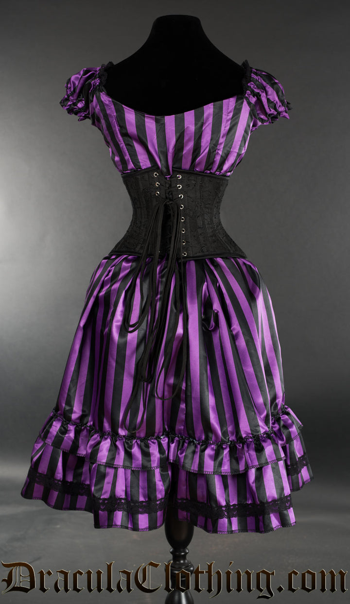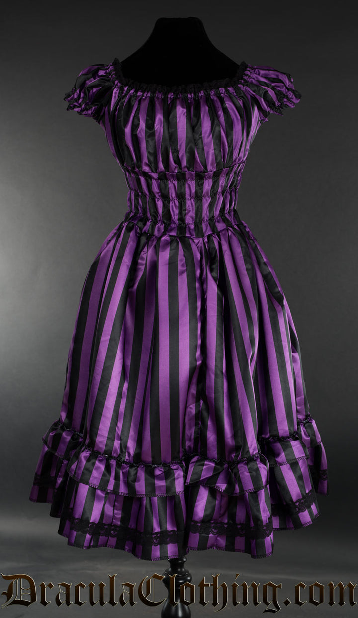 - Crafted from high quality purple and black striped satin fabric, this dress is both eye-catching and incredibly comfortable