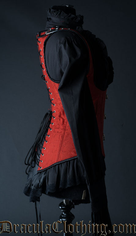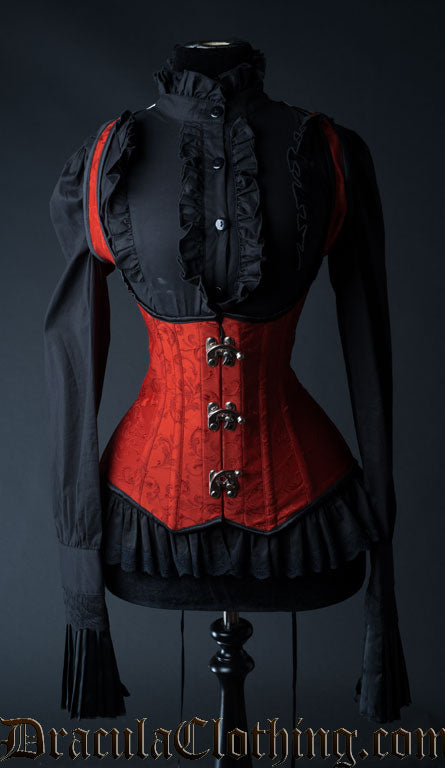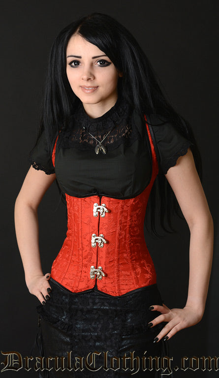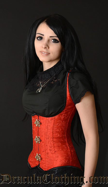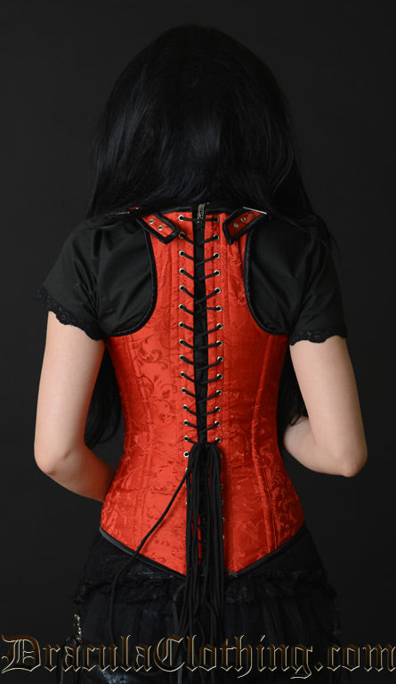 A high quality heavy corset that is fully steel boned with heavy spiral metal boning in the side and thick busk in the back and front. It has 4 steel boned busk in the back to give a sturdy feeling and a thick cotton lining.