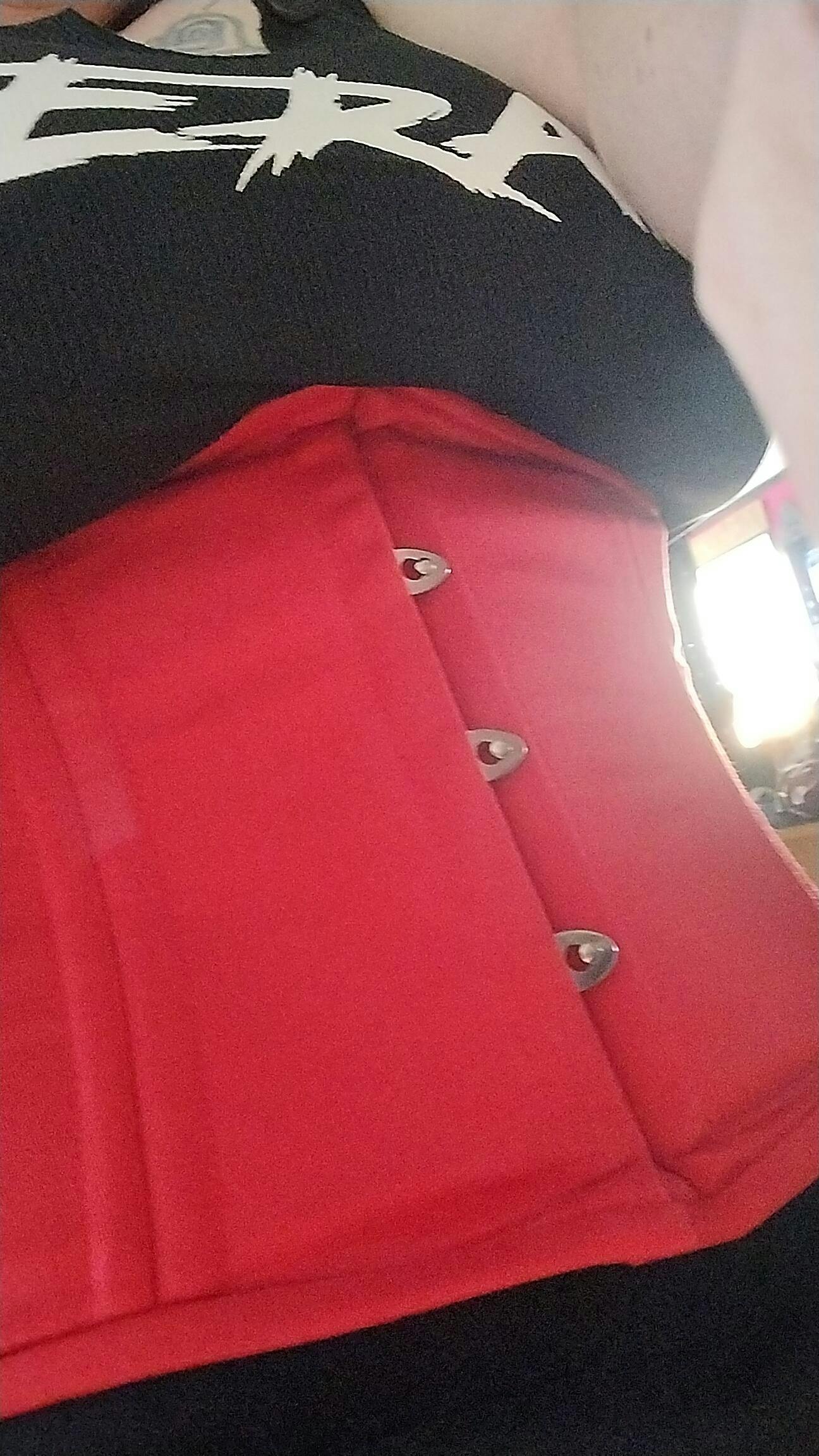 The red cotton double boned waist cincher is made with red cotton on the outside and thick black cotton lining on the inside.