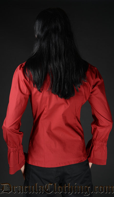 Red Cotton Ruffle Shirt