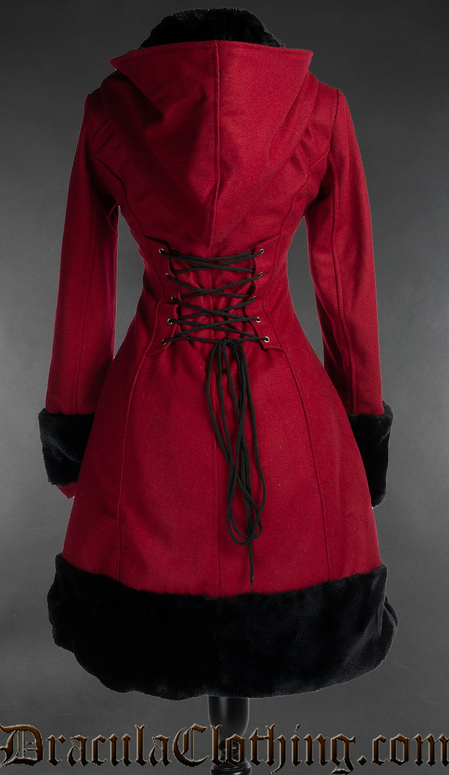 Red Wool coat with faux fur details. Made of 100% wool
